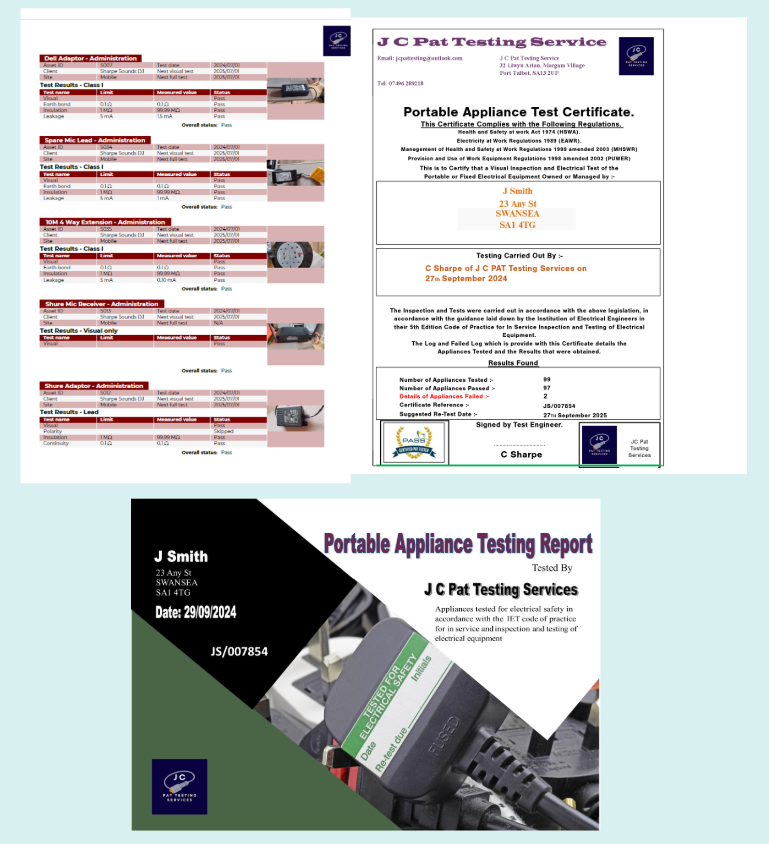 4 Report: At the end of the testing process, a PDF copy of the PAT results is emailed to the customer (usually when Chris is still at the premises depending on phone signal). Then a full laminated, bound copy of the results, certificate, asset register and list of failed items (if applicable) is with the customer within 48 hours (sometimes even on the same day).